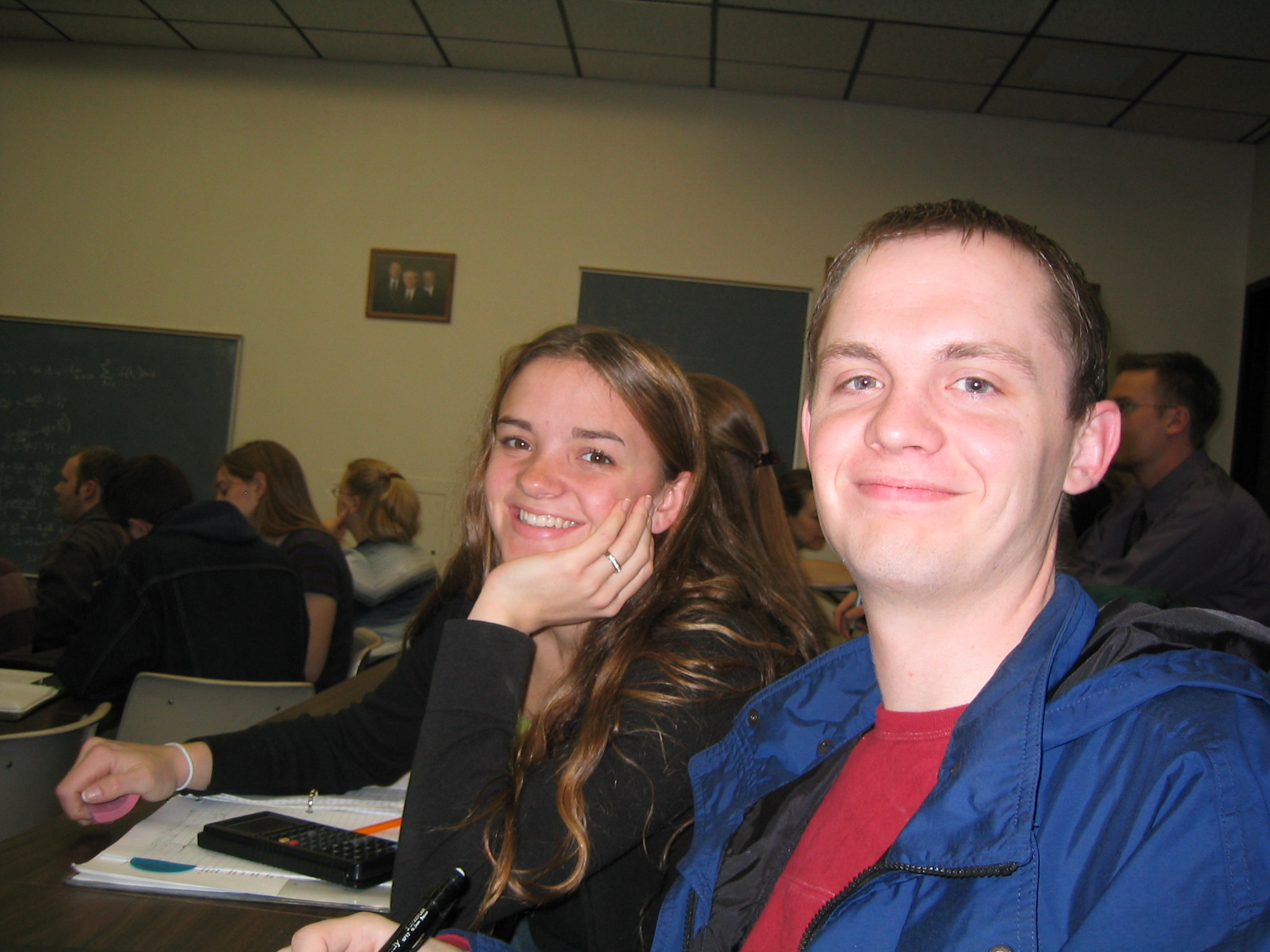 We are at my Chad and Heather's this weekend and having a great time. Most of the house woke up this morning at 3 am to go black Friday shopping. Well, they woke me up and now I can't fall back asleep. So I was taking care of some computer stuff when I found some great pictures on their computer. These pictures are from the calculus class where Chad and I met. We are engaged at this point, as you can tell from my fake Walmart ring. We got that ring the week we decided to get married. I'm so grateful we both took that class and for this romance! I wouldn't change it for the world, even the part where we went straight from math partners to fiances and when my finger turned green because of the temporary ring. Anyways, I got a kick out of these and I hope you enjoy them.