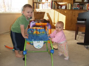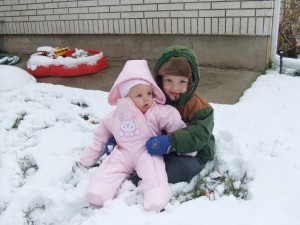 I don't really have a reason for this post except to show off my cute children. The snow pictures are from a while ago. But the other pictures I took today. Auretta is standing on everything. She is a mover and a shaker! Patrick just had to be in the lime light too.