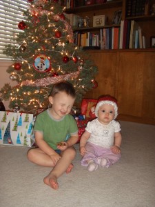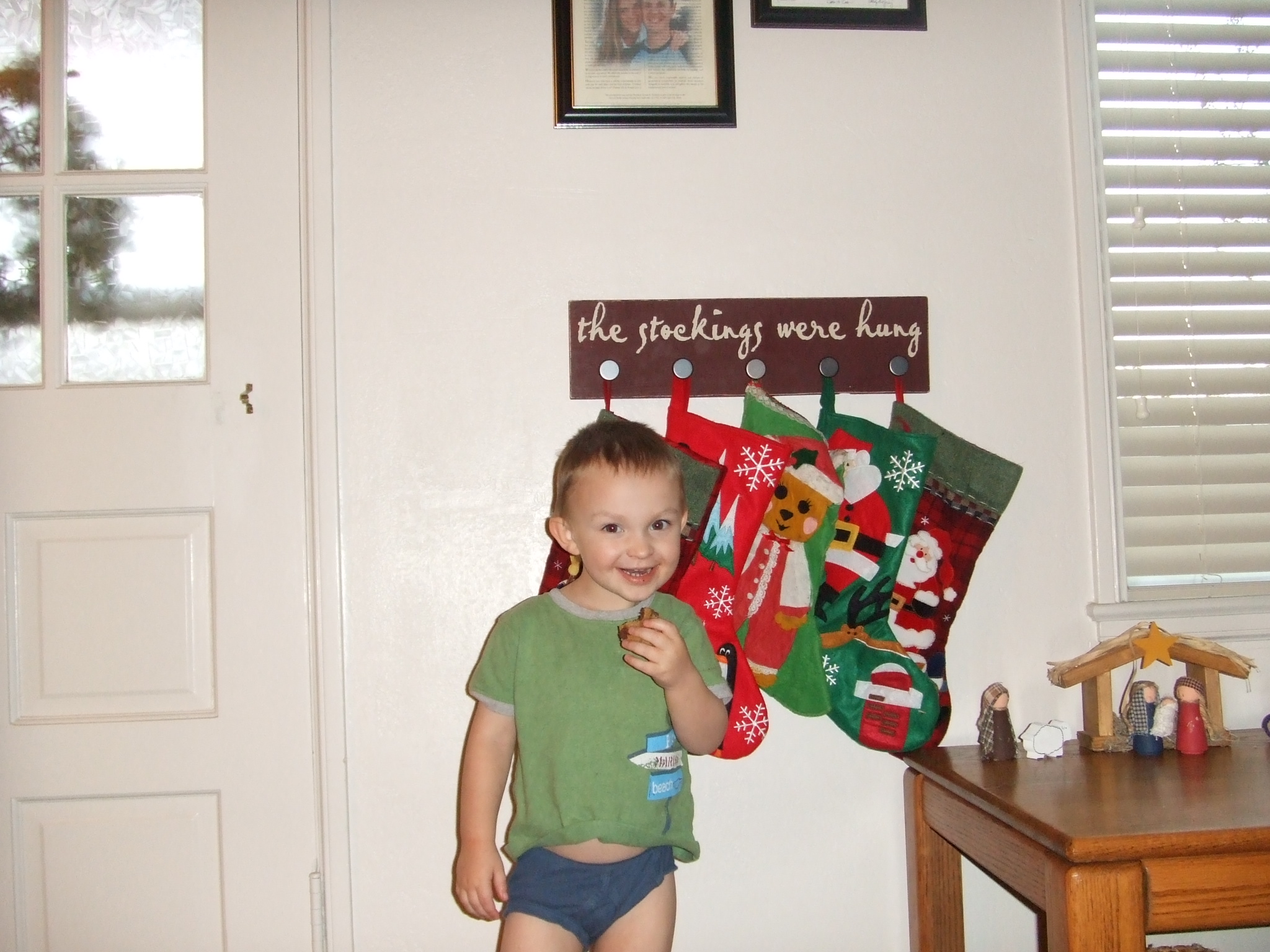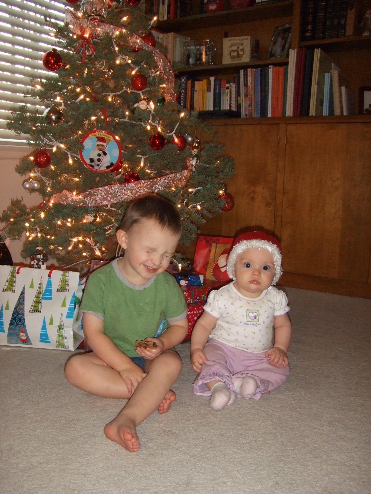 Patrick totally gets Christmas this year. He has a nativity set he plays with and we read the scriptures and talk about the story. His favorite characters are the wise men because they have jewels. But he also gets santa and presents. The first day the presents were under the Christmas tree he wanted to open them. Then we talked about how we had to wait until santa came. So when Baby Jo gets into the presents (which she does 2-10 times a day), Patrick stands in front of the tree and tells her, "No presents, Santa comes!" Translation, we can't open presents until santa comes. Pretty cute.