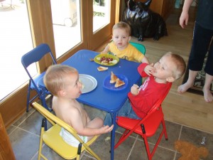 It was fun to watch all the little cousins play too. Patrick and Auretta are the oldest, so it was a house of crazy! Lots of hitting, pushing, toy stealing, and just having a good time. Boys will be boys. Threw my kids off when we went to Shayna's (my sister-in-laws) and her little girl just wanted to give them hugs. She would approach them and they would grab their toys and run. Once David figured out that she wasn't out to take his toys or hit him, he had a great time with her. Turns out the hug thing isn't so bad.
