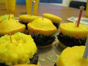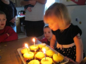 On her real birthday (Conference Sunday) Michael and Clarissa came down and we made some hamburger cupcakes.